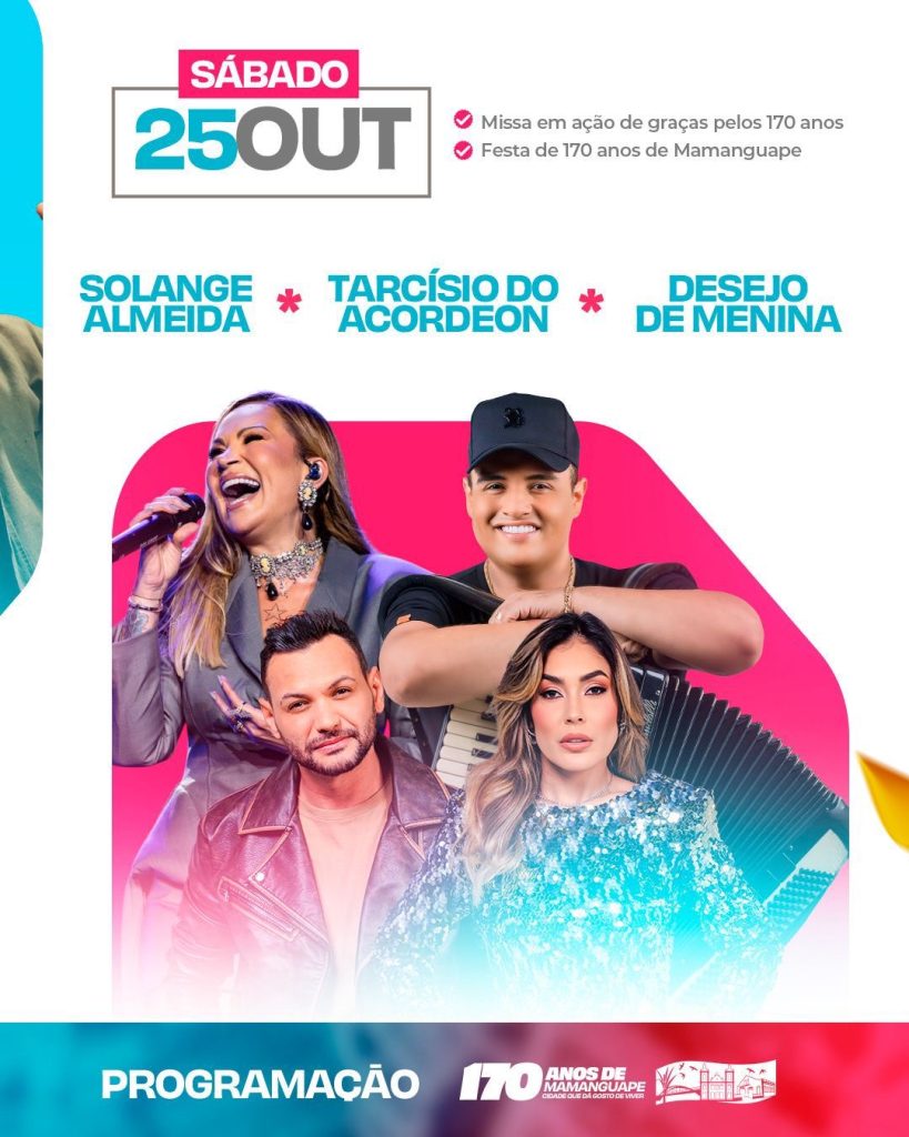 Segundo o prefeito Joaquim Fernandes, a celebração dos 170 anos de Mamanguape será marcada não apenas pela festa, mas também pelos avanços conquistados para a população. “Estamos trabalhando para que esse momento fique registrado na história do município, unindo lazer, esporte, cultura e obras que transformam a vida das pessoas”, destacou.