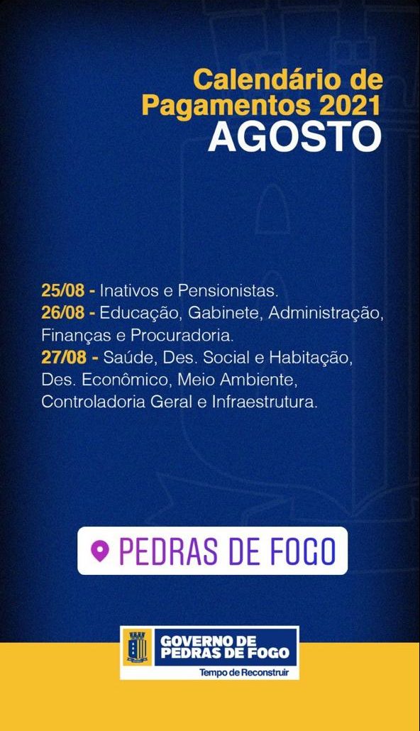 O município de Pedras de Fogo sai na frente e começa a pagar seus servidores ainda nesta quarta (25).