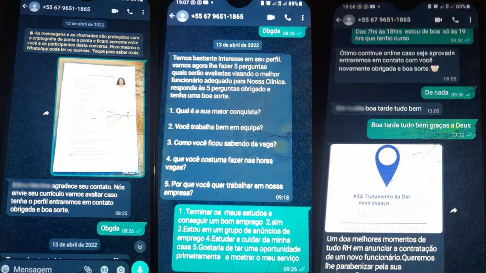 O advogado explica que geralmente a fraude começa com um anúncio, que chega por e-mail, mensagem da WhatsApp, SMS ou outro tipo de mensagem. Essa oferta uma ótima oportunidade profissional, solicitando um clique ou envio de currículo.