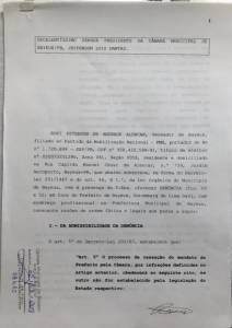 O pedido de cassação é baseado no descumprimento do Regimento Interno Municipal. De acordo com a denúncia, Berg Lima não está respeitando as leis do município.