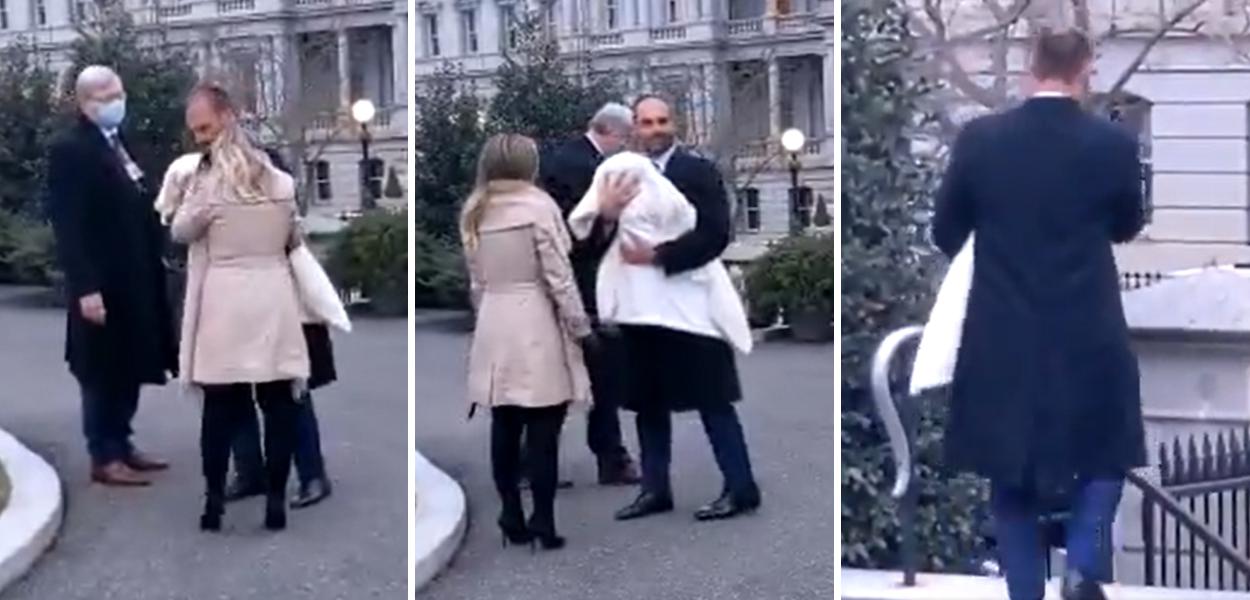 A passagem do parlamentar pela Casa Branca foi registrada pela GloboNews.