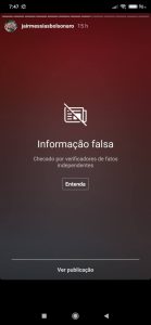Contudo, o Instagram removeu a imagem da conta do presidente após uma agência de independente demonstrar que a postagem se tratava de uma ‘fake news’. De acordo com uma checagem realizada pela Agência Lupa, indicada pela plataforma como justificativa da exclusão, os números citados incluíam mortos por outras doenças, como câncer e aids, erroneamente. Ainda segundo a agência, o Portal da Transparência do Registro Civil aponta que foram 2.808 óbitos por doenças respiratórias no período citado de 2019 e 3.217 em 2020.