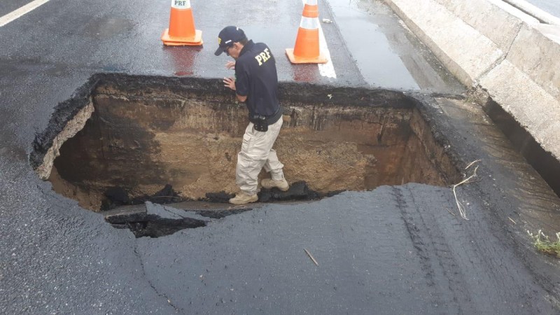 Ainda de acordo com a PRF, nessa quinta-feira (12), os agentes foram informados que o asfalto estava cedendo no local e haviam isolado o trecho para evitar alguma tragédia.