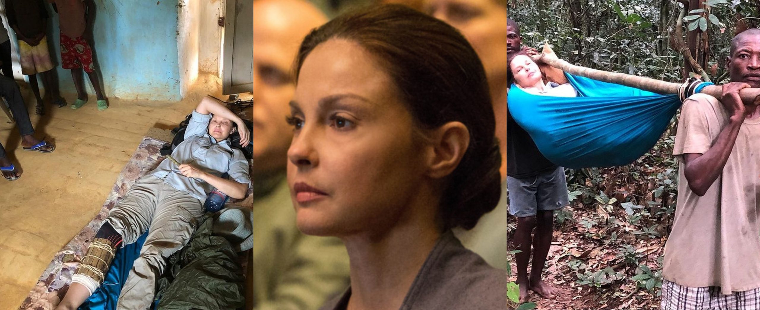 Ashley Judd usou as redes sociais para mostrar fotos e fazer o relato de um acidente que sofreu em uma floresta no Congo.