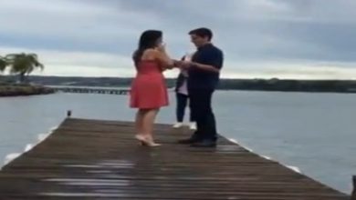 Fotógrafa rouba a cena ao cair no lago durante um pedido de casamento