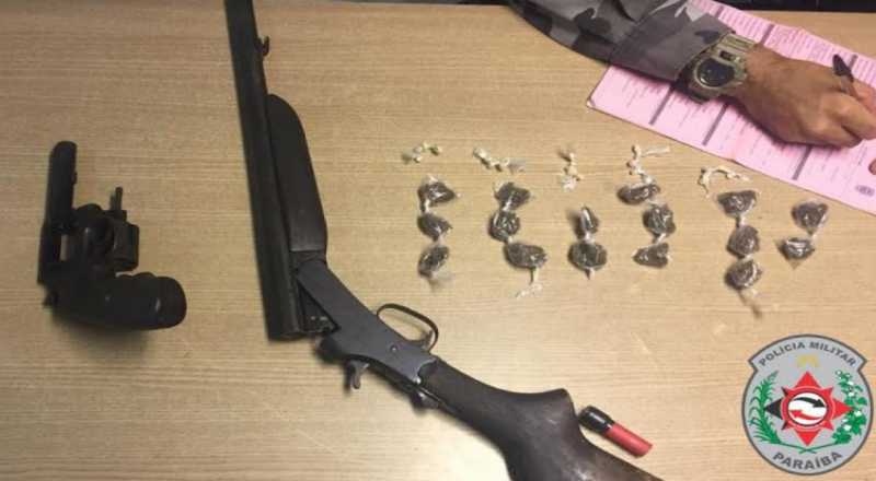 Policiais da Força Tática da 4ª Companhia de Polícia Militar prenderam um suspeito de atuar no tráfico de drogas, na noite deste sábado (9), na divisa entre as cidades de João Pessoa e Bayeux. O suspeito, de 20 anos, foi preso e com ele apreendidas drogas e armas.