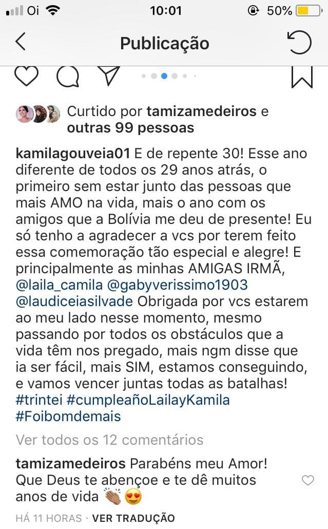 Mas em suas redes sociais, Kamila comemora seu aniversário na Bolívia, que aconteceu no último dia 28.