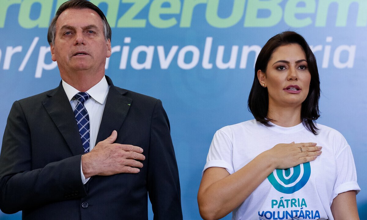 O presidente Jair Bolsonaro concedeu a Medalha de Mérito Oswaldo Cruz à primeira-dama Michelle Bolsonaro, que preside o programa Pátria Voluntária.