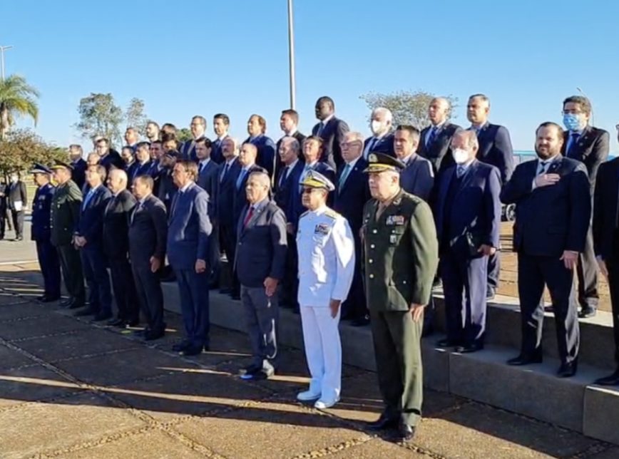 A Secom (Secretaria Especial de Comunicação Social) não informou detalhes sobre a reunião desta 3ª feira. Além de ministros, outros membros do governo e aliados do presidente também participaram da cerimônia de hasteamento da bandeira. Leia a lista de participantes: