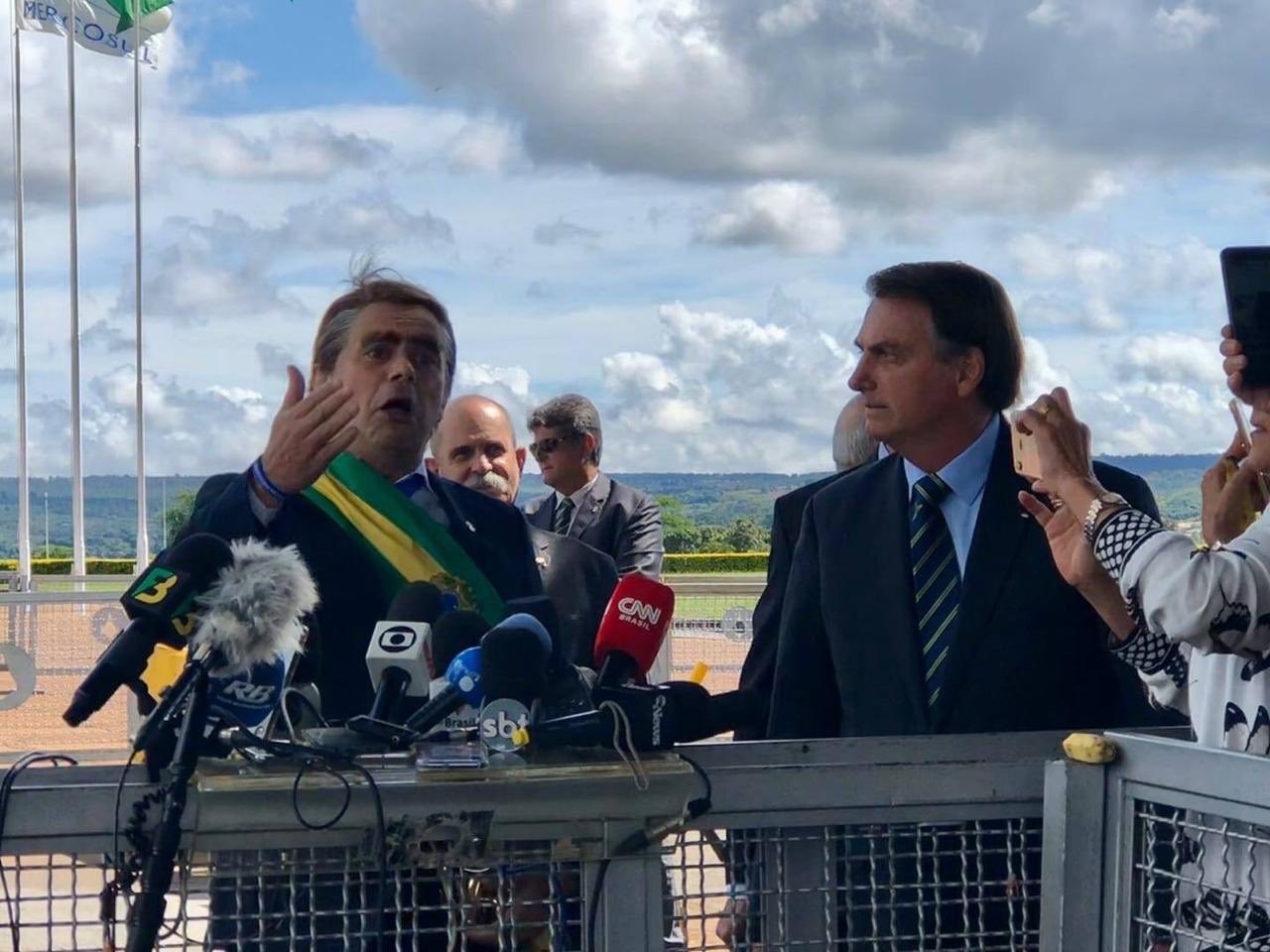 Bolsonaro polemiza ao levar humorista fantasiado de presidente e distribuir bananas a jornalistas