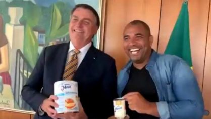 Bolsonaro recebe lata gigante de leite condensado de youtuber bolsonarista