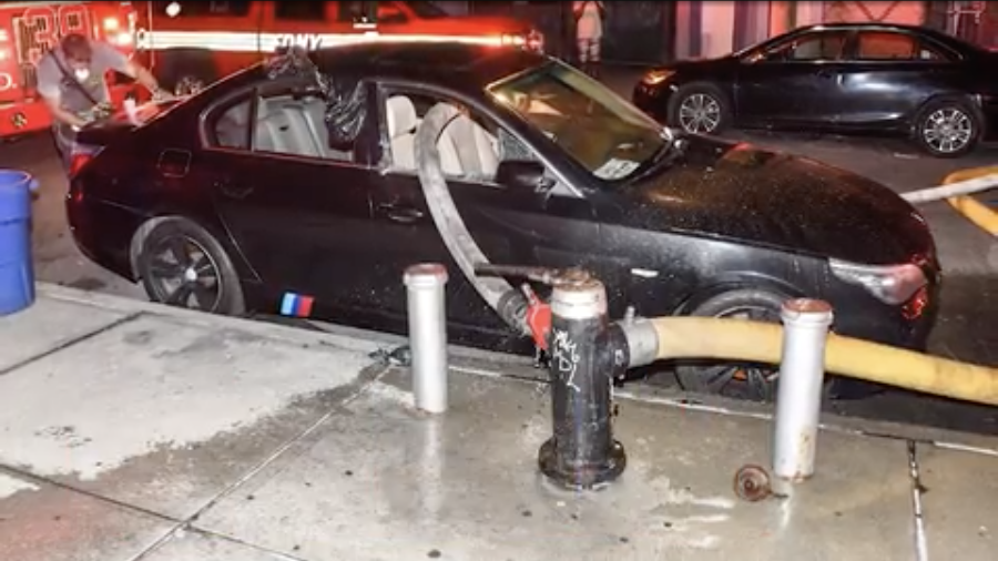 Na sexta-feira passada, bombeiros de Nova York (EUA) quebraram os vidros dianteiros de um BMW Série 5 estacionado ao lado de um hidrante.