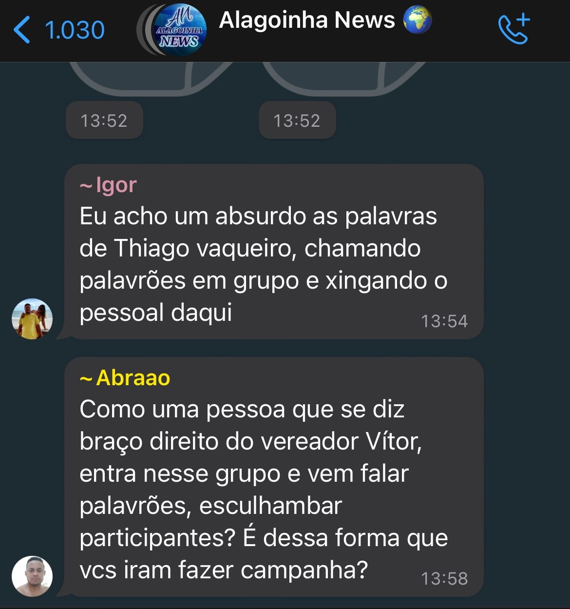 A declaração foi feita num grande grupo da cidade de Alagoinha. Nas mensagens Thiago diz não precisar trabalhar para ganhar dinheiro. O assessor chega a zombar de quem precisa trabalhar para ter seu sustento.