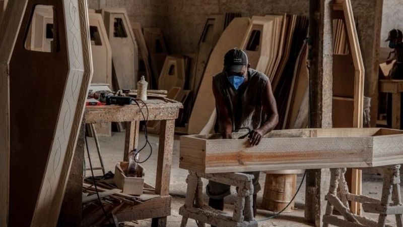 Em um momento em que o país enfrenta um desemprego recorde e muitas empresas estão demitindo por causa da pandemia de covid-19, fabricantes de caixões como a Godoy Santos estão contratando.