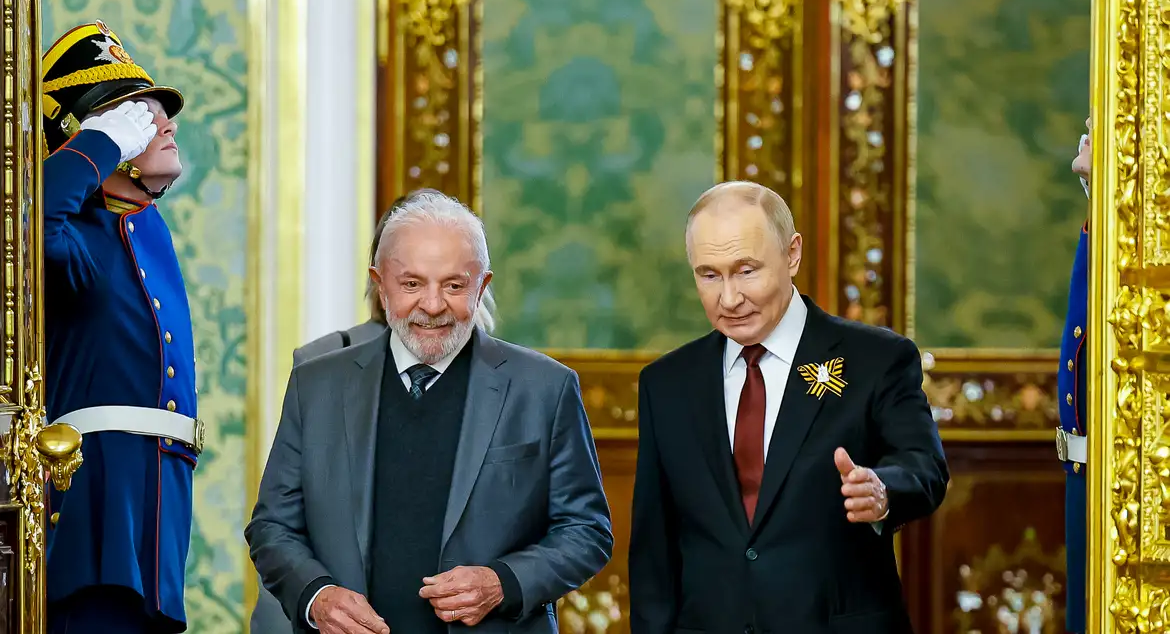 Lula chegou a Moscou na última quarta-feira (7), em visita no contexto das celebrações dos 80 anos da vitória da União Soviética sobre a Alemanha nazista na Segunda Guerra Mundial. É o feriado mais importante do país e foi comemorado, na manhã de hoje, com um grandioso desfile cívico-militar, antes da reunião bilateral entre os dois líderes.