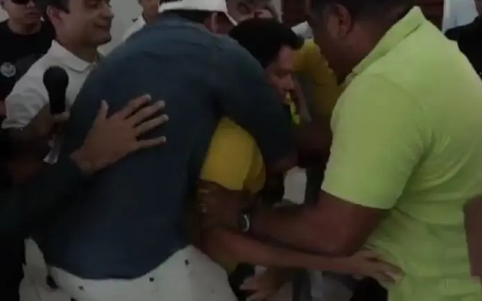 Após as provocações do Pastor Jader, o pai de Bruno, deputado federal e candidato à reeleição Wellington Roberto (PL), reagiu. Depois, o que se viu foi um tumulto generalizado. O candidato a deputado federal Cabo Gilberto (PL) também entrou na briga, que ficou feia quando o também candidato a federal, Caio (PL), ameaçou puxar sua arma de fogo.