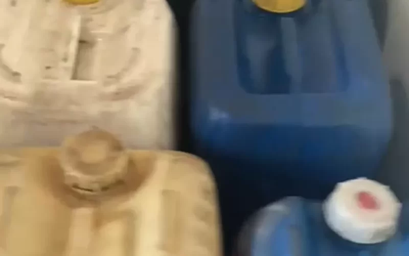 Segundo a polícia, foram achados cerca de 50 galões com cerca de 20 litros de combustível.