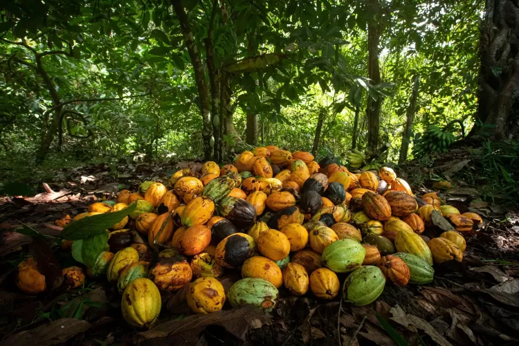 Crise climática e pragas são as responsáveis por uma colheita menor. Os efeitos das mudanças climáticas e da doença da vagem negra em plantios reduziu 20% da colheita na Costa do Marfim e 11% da de Gana.