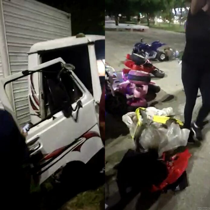 Caminhão fica desgovernado nos Bancários, invade Praça da Paz e chega a atingir carrinhos infantis