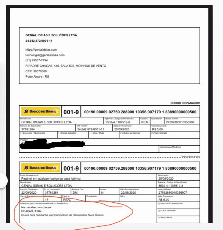 O candidato à Prefeitura Municipal de Patos, Ramonilson Alves (Patriotas), lançou uma campanha para a arrecadação virtual de recursos econômicos para a sua candidatura. Alguns doadores só estranharam quando notaram que a empresa que administra o site “Doação Legal” utilizado na campanha de arrecadação é a Genial Soluções.