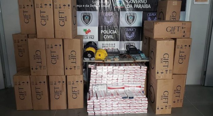 A Polícia Civil da Paraíba apreendeu na tarde dessa quarta-feira, 31, cerca de 20 mil carteiras de cigarros contrabandeados, uma arma de fogo e cinco notebooks, dentre outros objetos. O material foi apreendido no conjunto Acácio Figueiredo, em Campina Grande, no Sítio Pedras D’água, zona rural de Boqueirão, e no sítio Emas, município de Caturité.