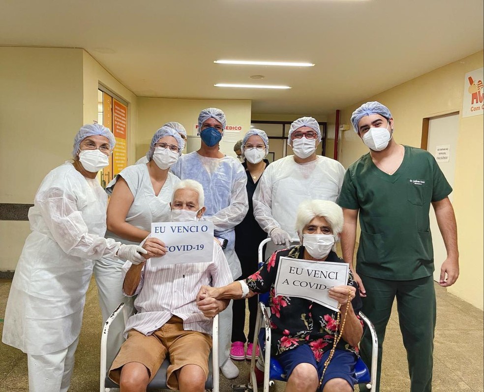 O casal de idosos Francisca Leite, de 77 anos, e Francisco Gomes, 80 anos, recebeu alta do Hospital Regional de Cajazeiras, na Paraíba, na quarta-feira (24), após internação por complicações da Covid-19. Eles são casados e foram homenageados pela equipe do hospital.