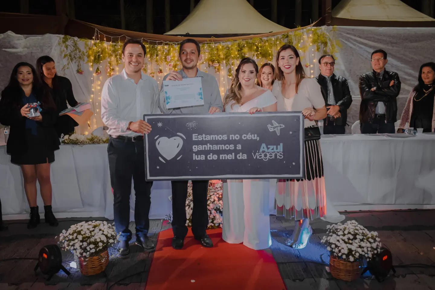 Na oportunidade, após o tão esperado sim, o Prefeito Matheus anunciou que as empresas Medow Entretenimento e Azul Viagens contemplaram cinco casais com pacote de viagem com origem e destino nacional, sendo 3 noites e dois dias de hospedagem e aéreo. Na noite, os casais sorteados destacaram o que a empresa Azul Viagens propõe: “estão no céu, ganhamos a lua de mel”.