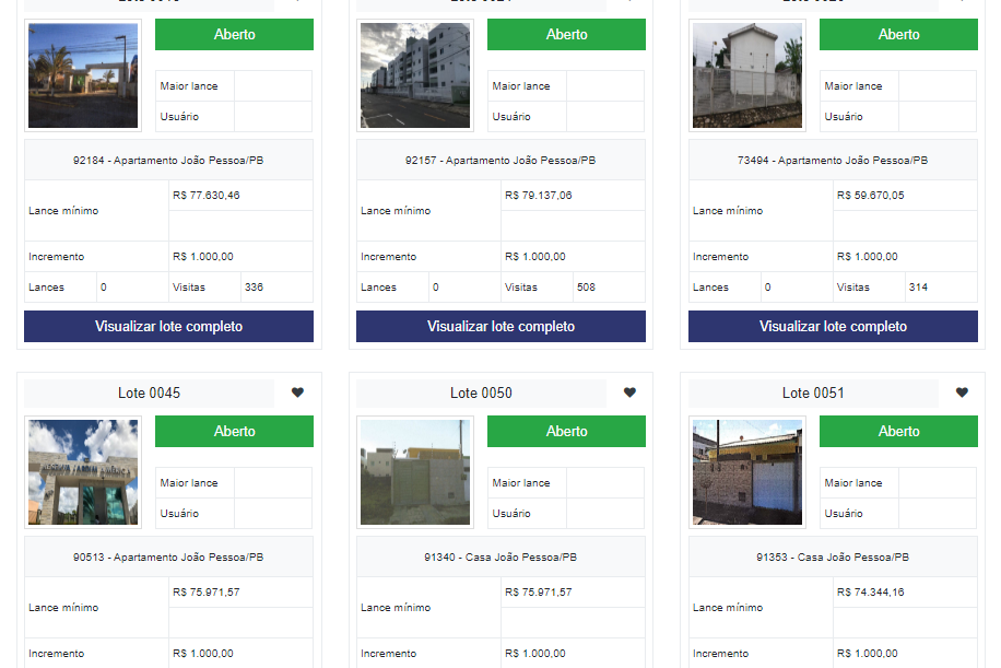 Onze imóveis de propriedade do Banco do Brasil em João Pessoa entraram em leilão. Os lotes têm lances iniciais que vão de R$ 59 mil a R$ 81 mil. Veja a lista de imóveis.