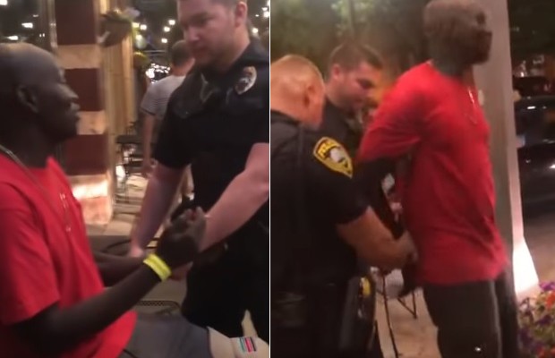Já com as mãos algemadas, ele diz em voz mais alta: “Peguem a minha carteira. Veja o quão engraçado isto é. Liguem para o seu supervisor agora. Vocês são os caras mais idiotas que já conheci na vida. O que há de errado com vocês? Vocês simplesmente concluem o que uma pessoa é e a prende?”, ressaltou.