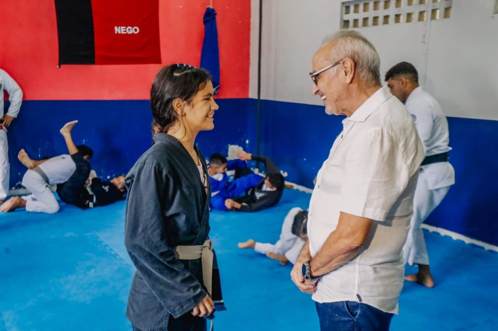 O prefeito Cícero Lucena visitou, na manhã desta terça-feira (24), o treino de Jiu Jitsu de alunos do projeto Campeões do Amanhã. Ele foi até o Centro de Referência da Juventude, em Mangabeira, para parabenizar os 12 atletas de João Pessoa medalhistas no AJP Tour, realizado na cidade de Fortaleza (CE), no último final de semana.