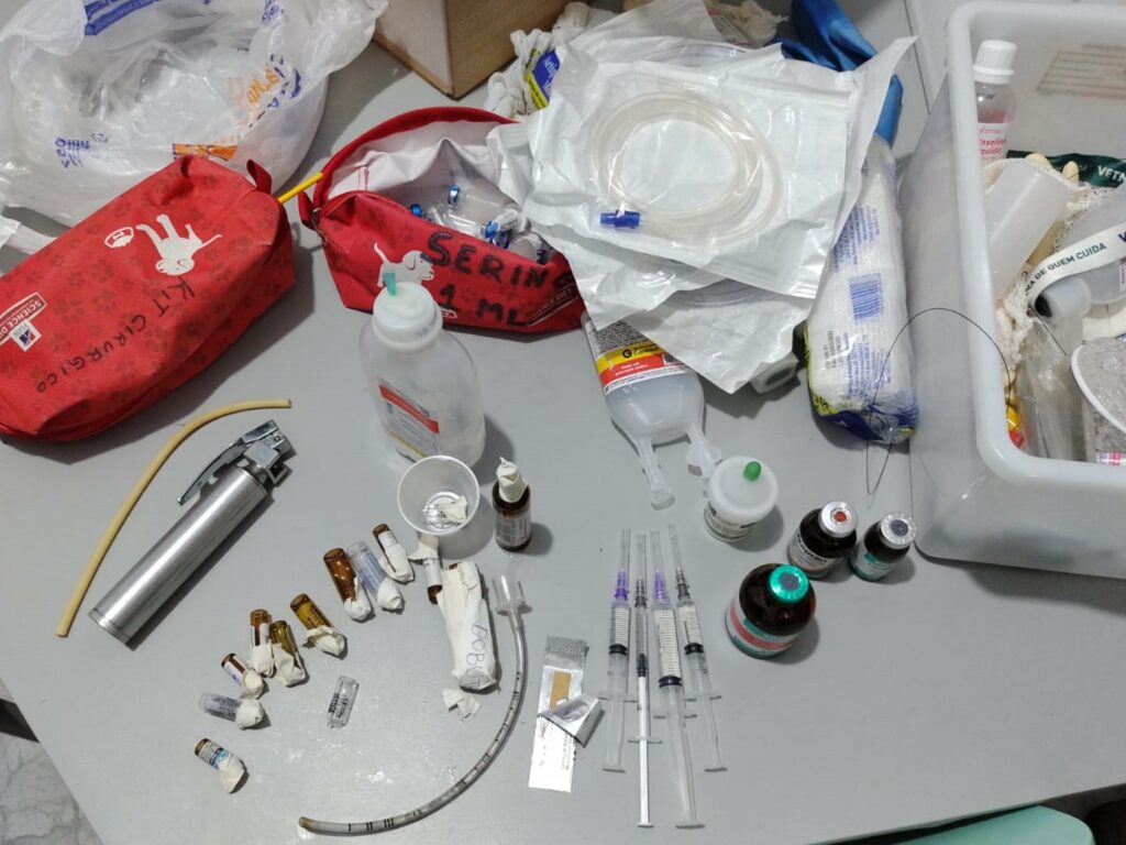 “Eles faziam compra desse material, vacinas, tinha muita seringa, muito material perfurocortante, que eles utilizavam para fazer procedimentos cirúrgicos de forma clandestina. Pelo tanto de material e o tanto de frasco que a gente encontrou lá, tem muita procura”, disse.