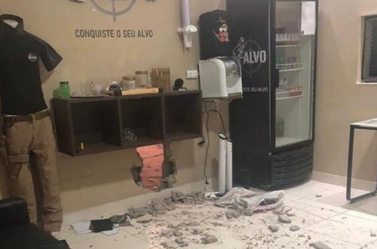 Segundo a administração do estabelecimento, foram levadas três espingardas calibre 12, quatro pistolas 9 mm, 400 munições, três notebooks e o equipamento responsável pelas gravações do circuito de segurança.