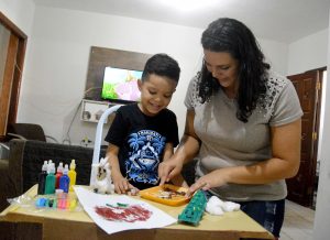 É assim na família de Ícaro Ricardo, de cinco anos, aluno do Crei Maria Ruth de Souza, no Geisel. Ele e a mãe, Taynar Patrícia da Silva, aproveitam esse momento para ficarem ainda mais juntos e realizarem as atividades em família.
