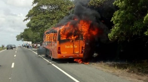 Um ônibus com cerca de 30 passageiros pegou fogo na manhã desta quarta-feira (19), na BR-230, na Paraíba. O ônibus da viação Rio Tinto saiu de João Pessoa, às 8h30, com destino a Alagoa Grande e Areia.