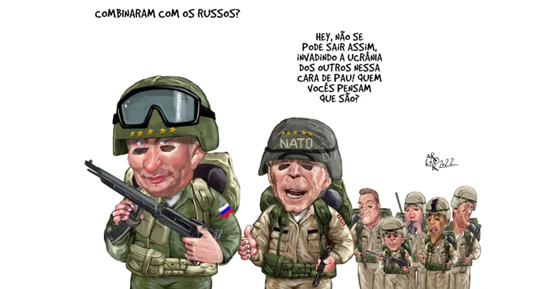 O cartunista Aroeira satiriza a ação do governo Russo em iniciar uma guerra contra a Ucrânia.