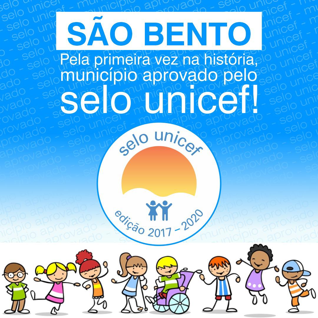 No documento, assinado por representantes do UNICEF na região Nordeste, o prefeito de São Bento, Jarques Lúcio da Silva II, recebe os parabéns pelos avanços conseguidos em educação, saúde, assistência social, cultura e proteção de crianças e adolescentes, durante a sua 1ª gestão, 2017-2020, cujas ações embasaram a confirmação da certificação do Selo pelo Fundo das Nações Unidas para a Infância (UNICEF).