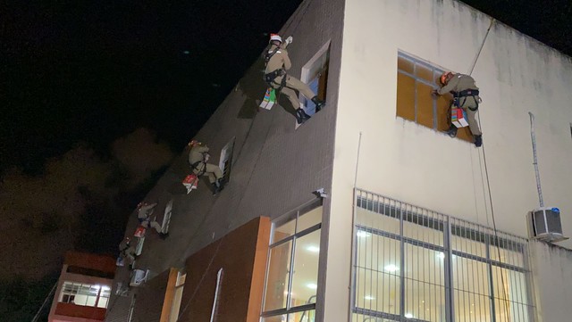 Uma equipe de bombeiros militares fez um rapel, na noite da quarta-feira (22), para entregar presentes de Natal às crianças internadas no Hospital Napoleão Laureano – referência para tratamento de câncer na Paraíba – localizado em João Pessoa.