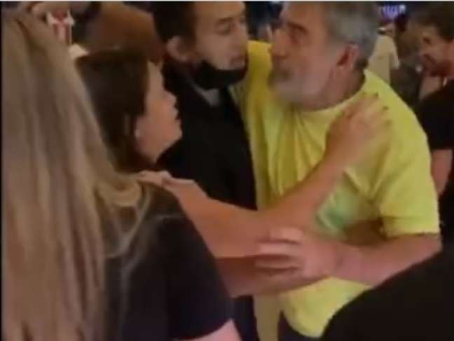 No vídeo, o parlamentar aparece de blusa amarela, aparentemente muito nervoso, batendo boca com as pessoas que estavam no local e sendo contido por seguranças.