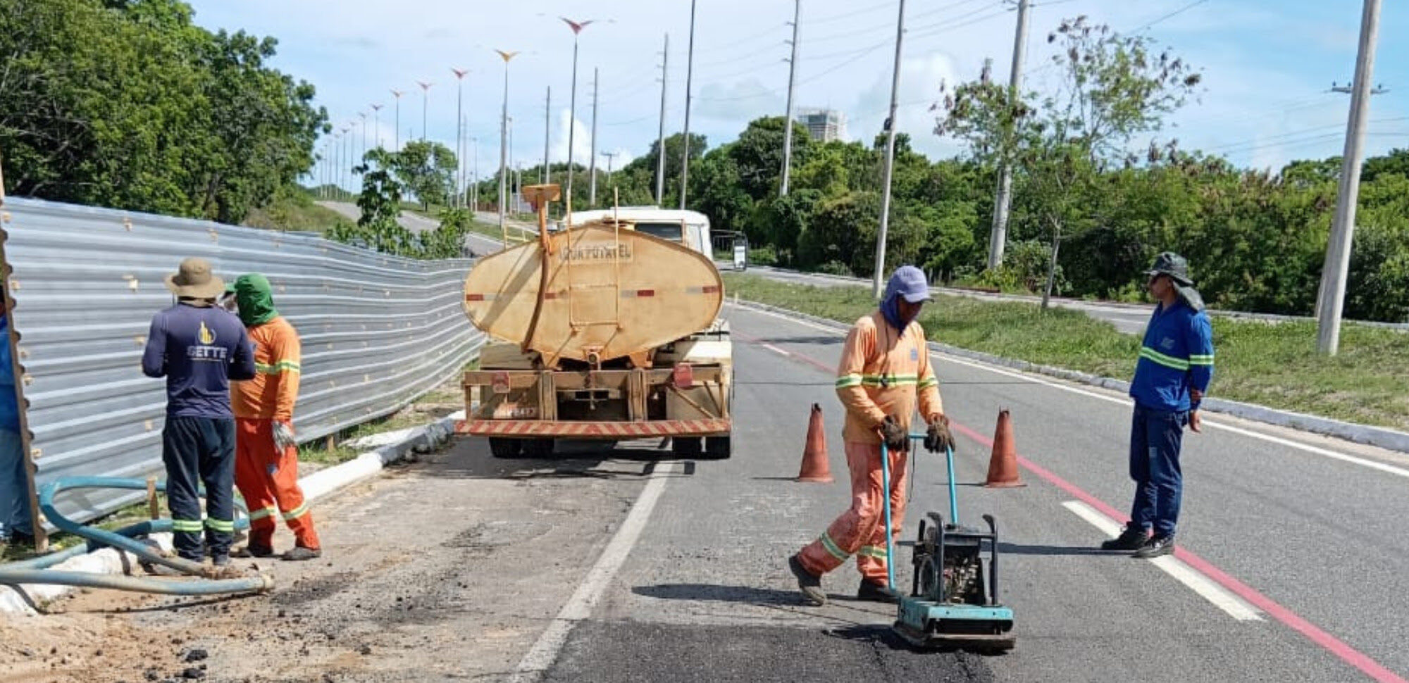 Já no Litoral Sul do Estado, o DER, por meio da Residência Rodoviária de Itabaiana, realizou os serviços na PB-008, com pintura de dez lombadas e construção de mais duas, além de assentamento de placas, serviços de tapa buraco e remoção dos bancos de areia. Ainda no Litoral Sul, na PB-034, trecho ligando a BR-101 a Alhandra, foram realizados os serviços de pintura de lombadas e assentamento de placas de sinalização.