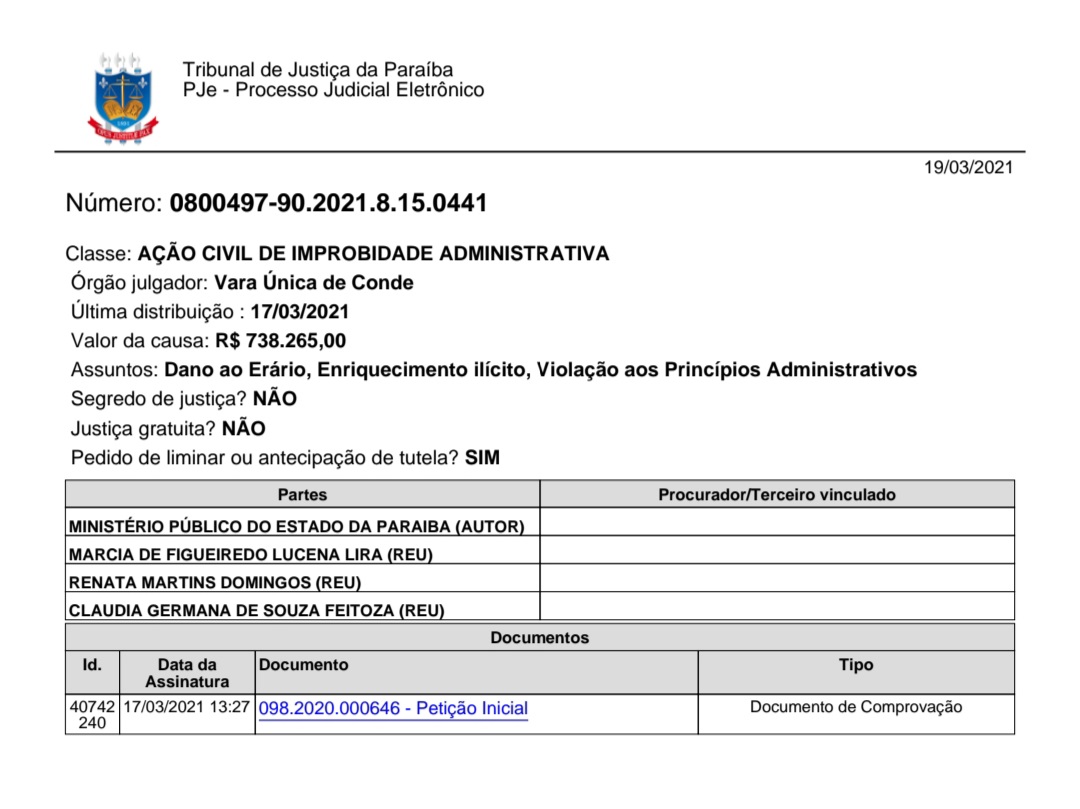 O que causou estranheza e revolta na população de Conde é saber que medicamentos pagos com dinheiro público foram queimados pela ex-prefeita Márcia Lucena. O Ministério Público da Paraíba (MP) entrou com uma Ação Civil de Improbidade Administrativa contra a ex-prefeita, contra a ex-secretária de Saúde, Renata Martins Domingos e contra a enfermeira Claudia Germana de Souza Feitoza, ex-coordenadora da Assistência Farmacêutica de Conde.