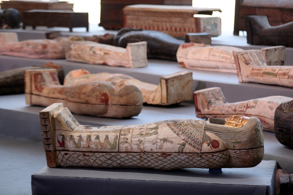 O Egito exibiu neste sábado (14) mais de 100 sarcófagos, alguns com múmias dentro, a maior descoberta deste ano no sítio arqueológico de Saqqara. Outras 40 estátuas foram encontradas.