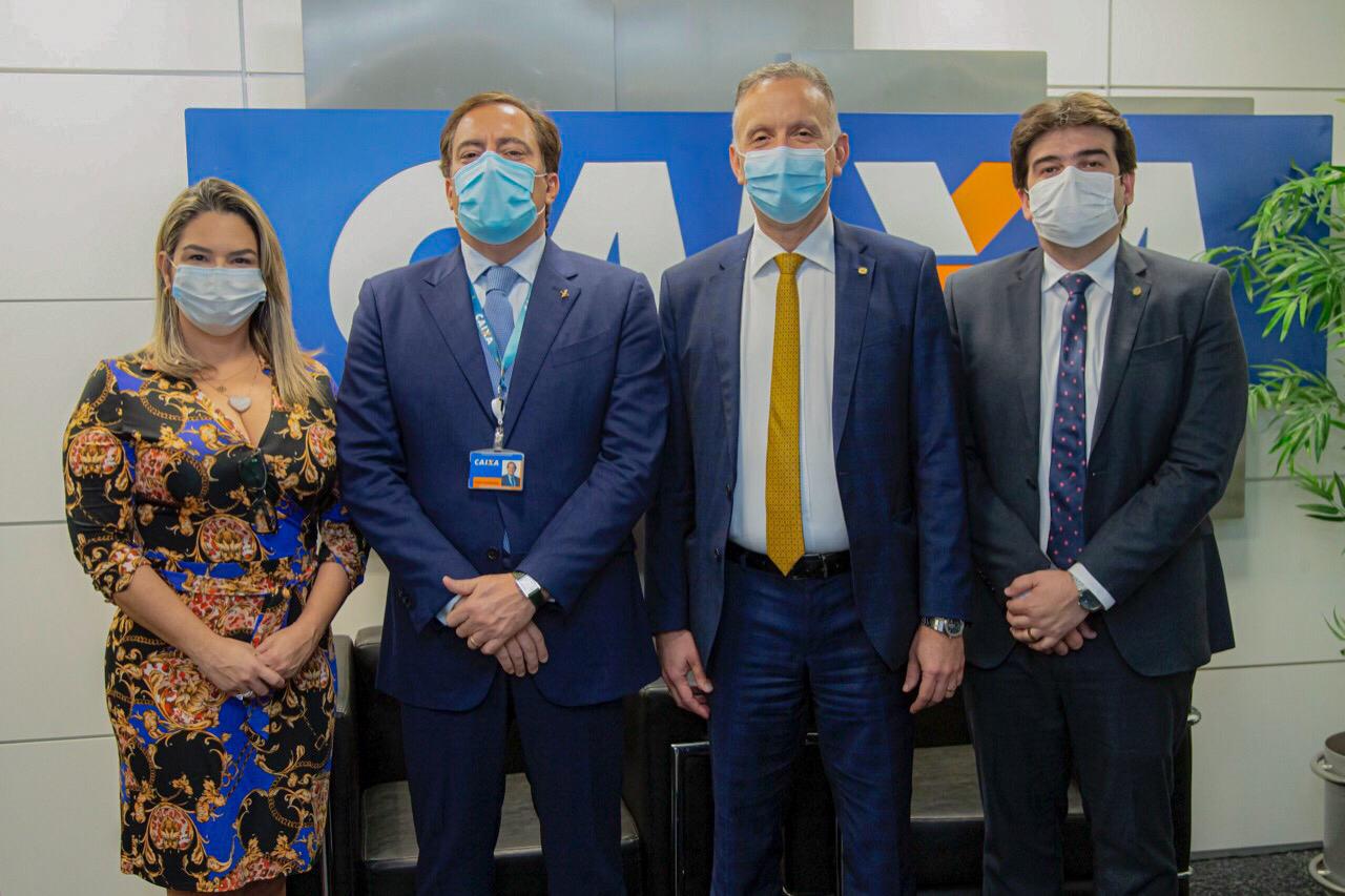 A prefeita de Conde, Karla Pimentel; o deputado federal, Aguinaldo Ribeiro; e o deputado estadual, Eduardo Carneiro; se reuniram, nessa quarta-feira (14), com o presidente da Caixa Econômica Federal (CEF), Pedro Guimarães, para tratar da instalação de uma agência da CEF na cidade.