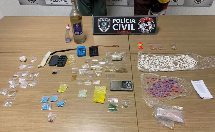 Segundo a Polícia Civil, com os dois foram encontrados uma gama de variedades de entorpecentes, sendo cerca de 600 comprimidos de ecstasy, 100 micro pontos de LSD, Raxixe, MDMA, loló e cocaína.