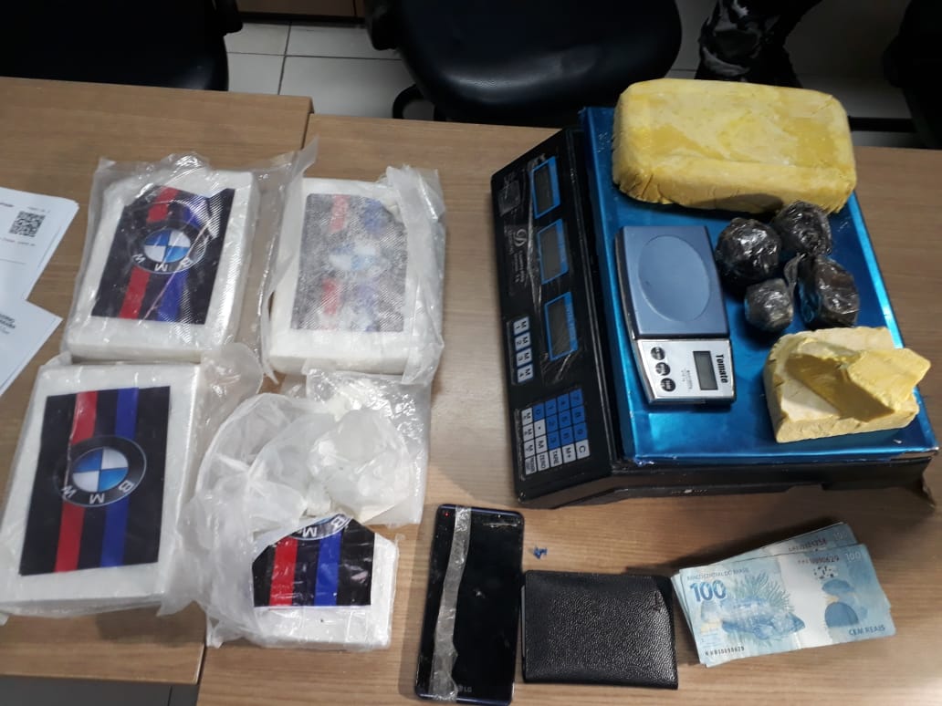 Com o motorista, os policiais militares do 1º Batalhão apreenderam 4 quilos de cocaína e 2 quilos de crack.