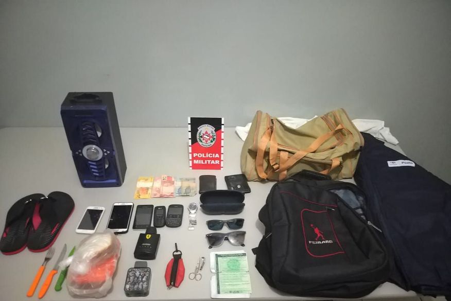 Com eles foram encontrados celulares, dinheiro, óculos e uma marmita com o almoço de uma das vítimas, além do carro que era utilizado para praticar os roubos.