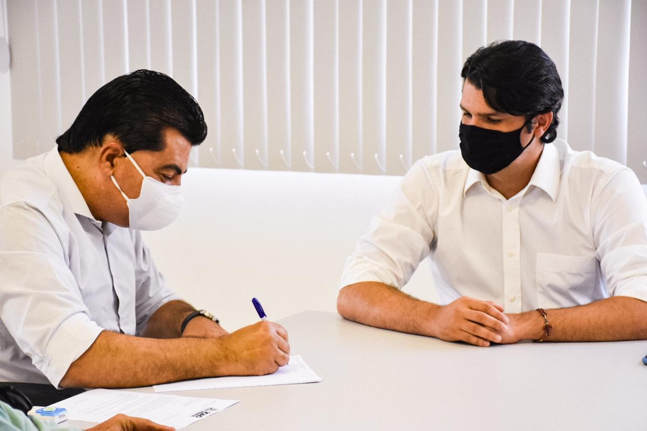 O vice-prefeito eleito de João Pessoa, Leo Bezerra (Cidadania), se reuniu na manhã desta segunda-feira (07) com o vice-prefeito, Manoel Júnior (Solidariedade). Na ocasião, os dois conversaram sobre o processo de transição.