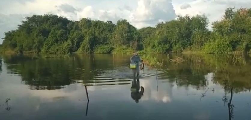 Enfermeira atravessa rio caminhando para conseguir vacinar idosa no sertão