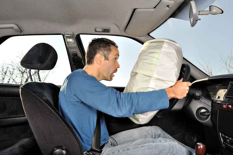 Essa explosão gera o gás que infla a bolsa de ar —que no caso de uma colisão frontal, para o motorista, está embutida no volante— antes de o corpo vir para a frente e se chocar internamente.