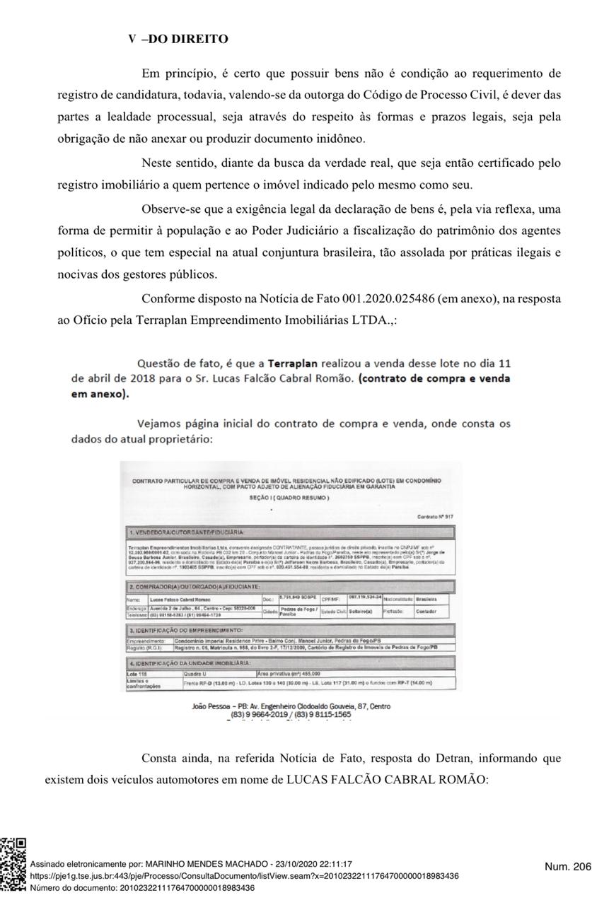O candidato Lucas Romão, que está na corrida para assumir a cadeira de prefeito de Pedras de Fogo, pode ter que mudar seus planos. O Ministério Público Eleitoral recorreu do Registro de candidatura de Lucas, após flagrá-lo omitindo bens.