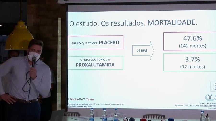 Na apresentação dos resultados, em 11 de março, em um hospital da Samel em Manaus, os pesquisadores afirmaram que houve 12 mortes, entre os 317 pacientes que tomaram a proxalutamida. Entre os 328 que tomaram placebo, foram 141 mortes. Já em uma publicação no site Clinical Trials, em junho, os mesmos pesquisadores apontaram 35 óbitos entre pessoas que usaram a droga e 162 entre as que usaram placebo.
